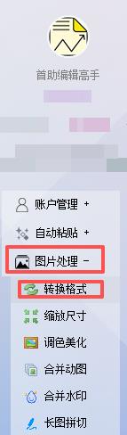 2、点击“图片处理”,选择“转换格式”。