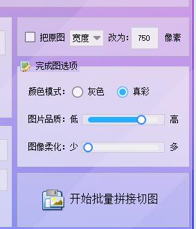 6、还可以设置图片的颜色模式以及画质等,参数设置好后点击“开始批量拼接”就可以啦。