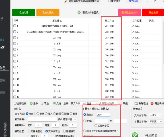 扩展名修改功能让您可以批量更改文件类型: